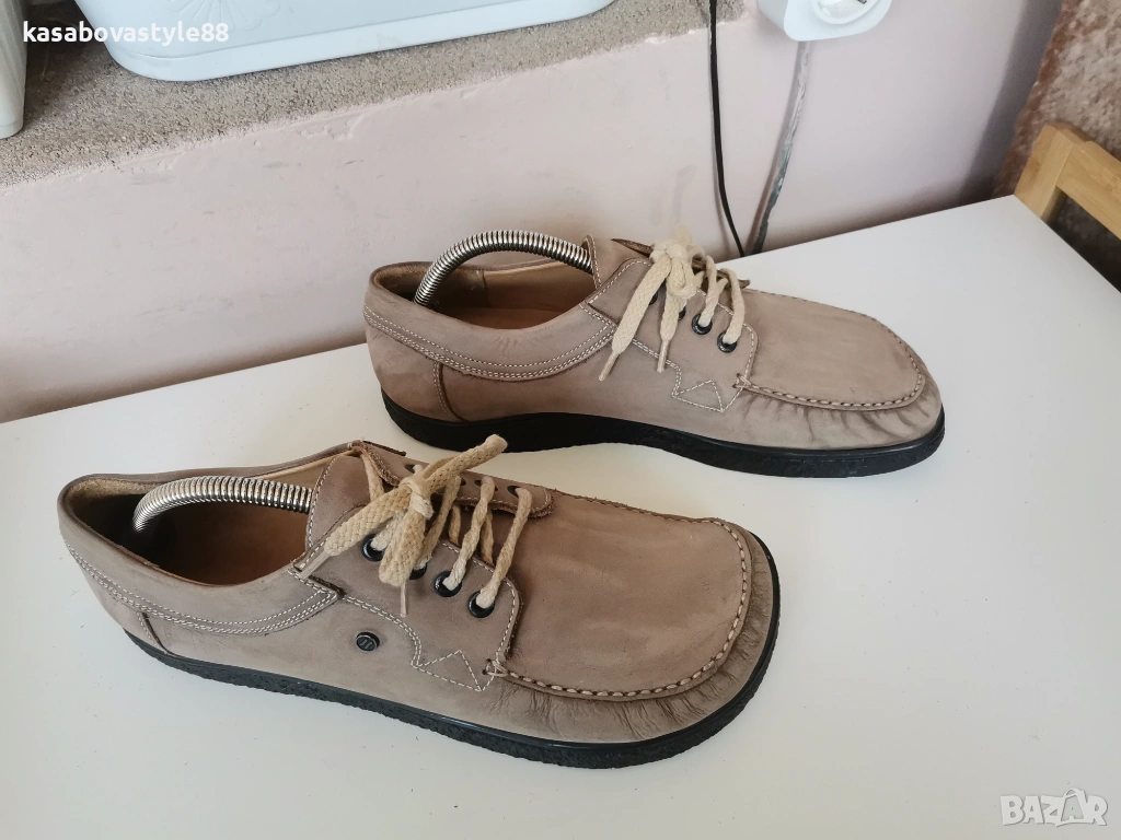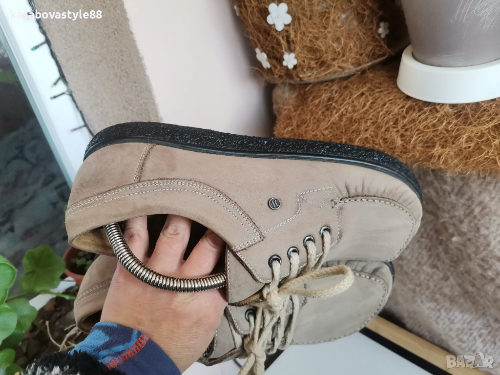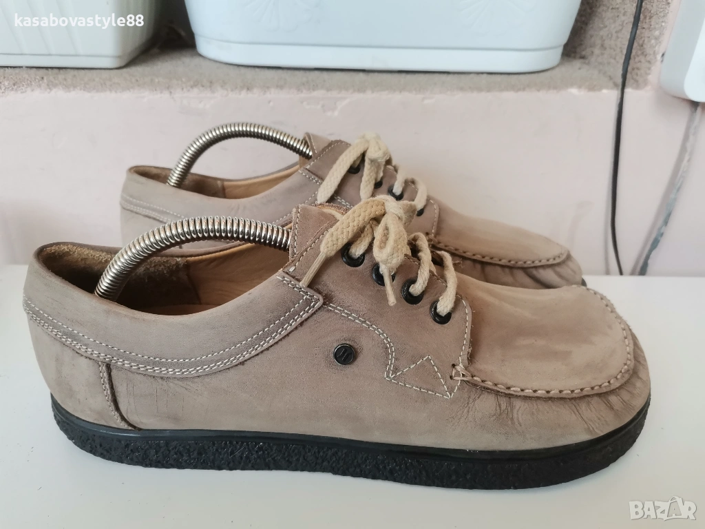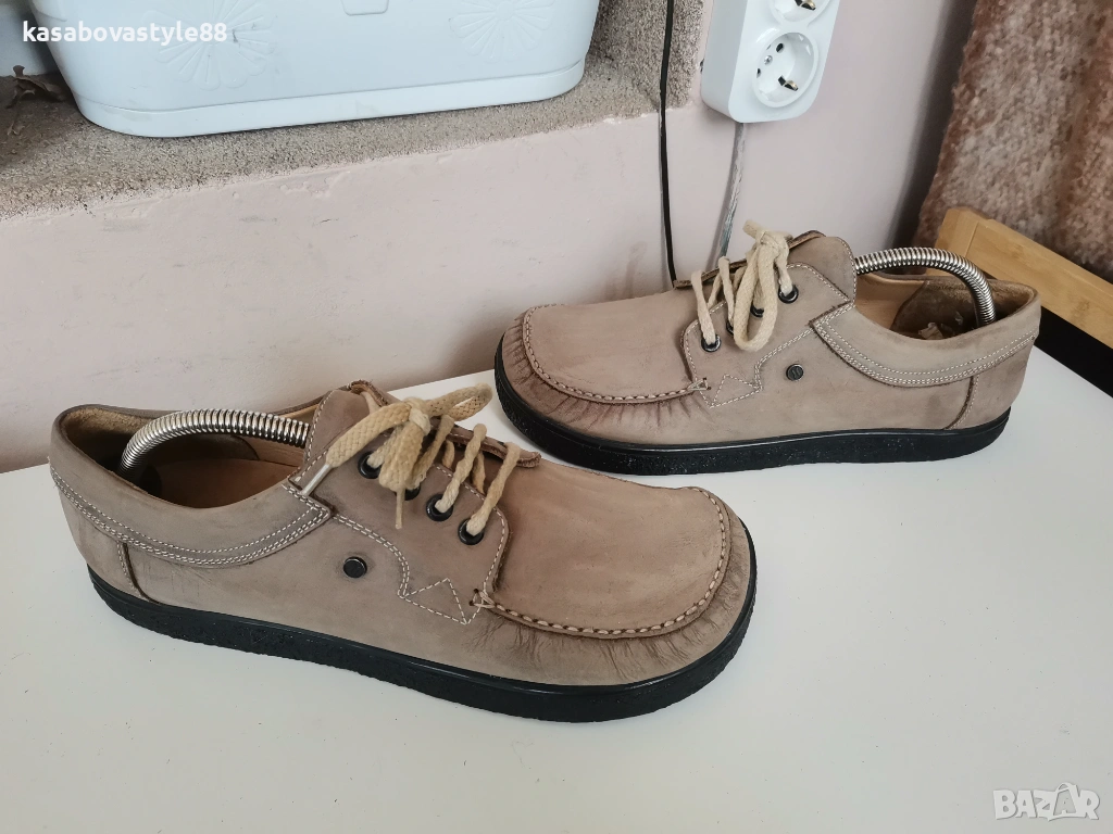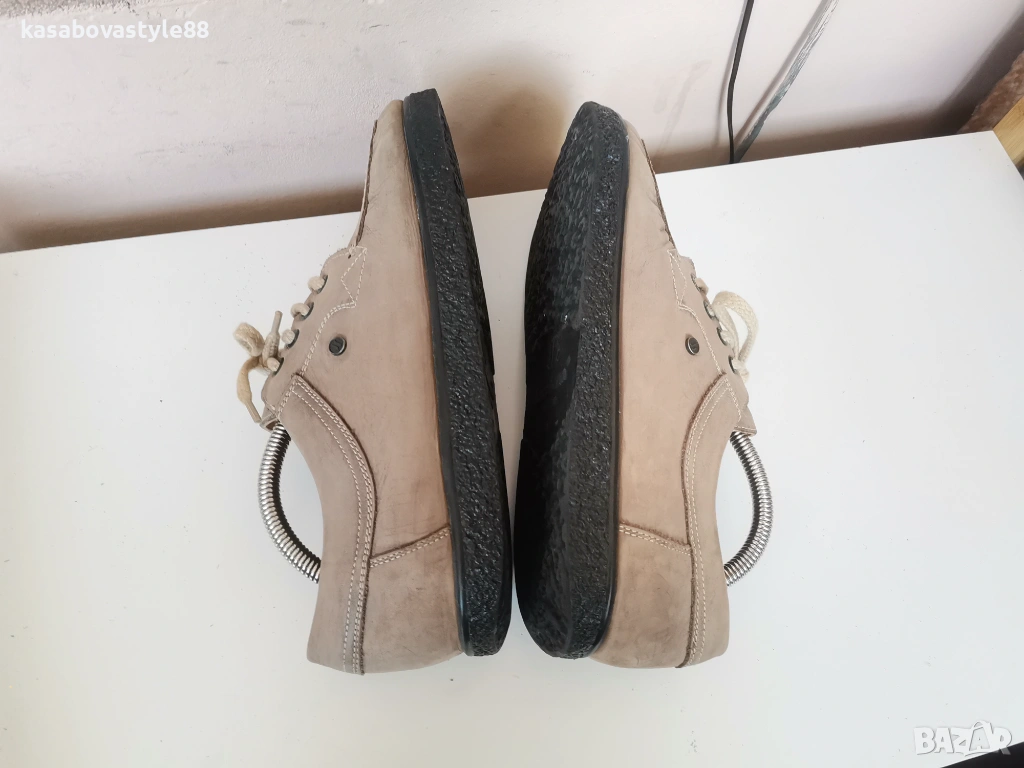 Мъжки ергономични обувки изработени от висококачествена естествена кожа(набук) в бежов цвят.Носени съвсем малко , перфектни както отвътре, така и отвън. 100%оригинални!! Те са известни със своя комфорт и качество. Ходилото е олекотено и еластично,което ги прави перфектни за ежедневието.Дължина на стелка 28см.Ходило-3см в страничната част. Цялостна височина отзад 8см.