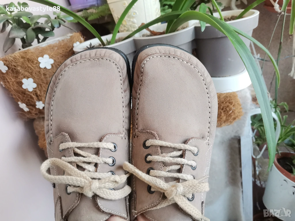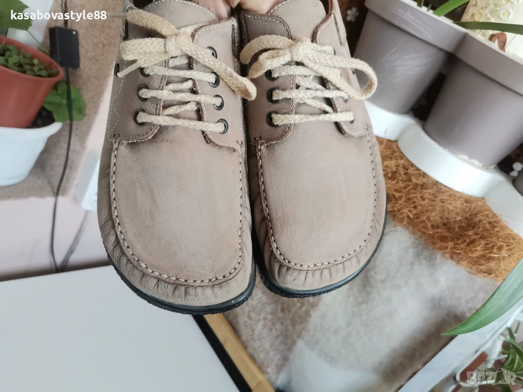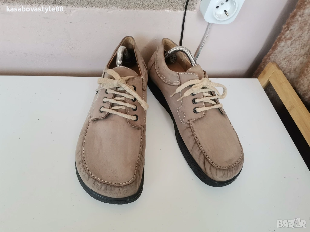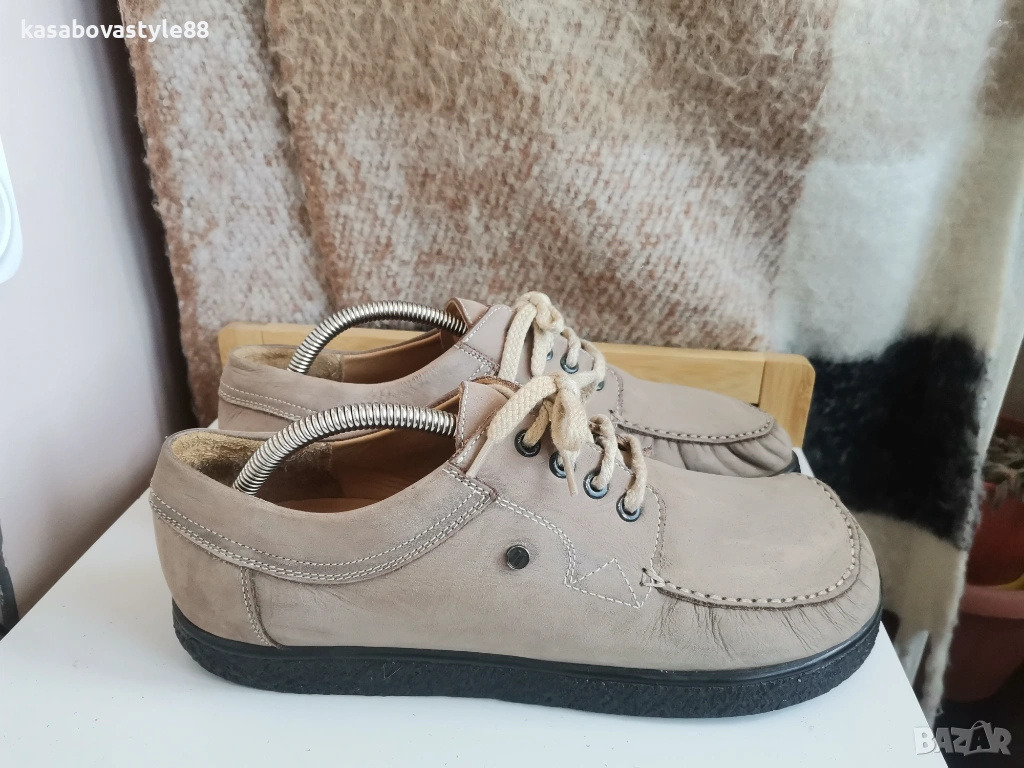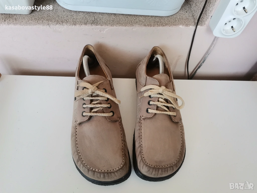 Мъжки ергономични обувки изработени от висококачествена естествена кожа(набук) в бежов цвят.Носени съвсем малко , перфектни както отвътре, така и отвън. 100%оригинални!! Те са известни със своя комфорт и качество. Ходилото е олекотено и еластично,което ги прави перфектни за ежедневието.Дължина на стелка 28см.Ходило-3см в страничната част. Цялостна височина отзад 8см.