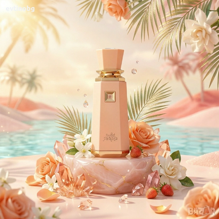 Потопете се в Sweet Paradise – хармония от сочни плодове и нежни цветни нотки, завършващи с кадифена мекота. Този парфюм е олицетворение на женския чар: ефирен, изискан и неустоимо съблазнителен.