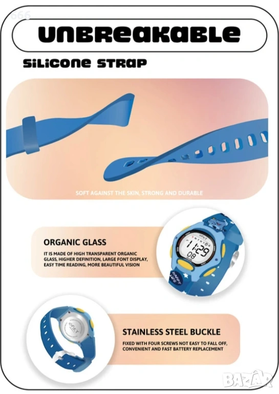 [Лек дизайн] Нашият детски часовник е лек и удобен за носене през целия ден. С регулируема каишка и гладка извита повърхност, той е идеален за всяко активно дете. Това е идеалният часовник за деца - стилен, но и здрав.