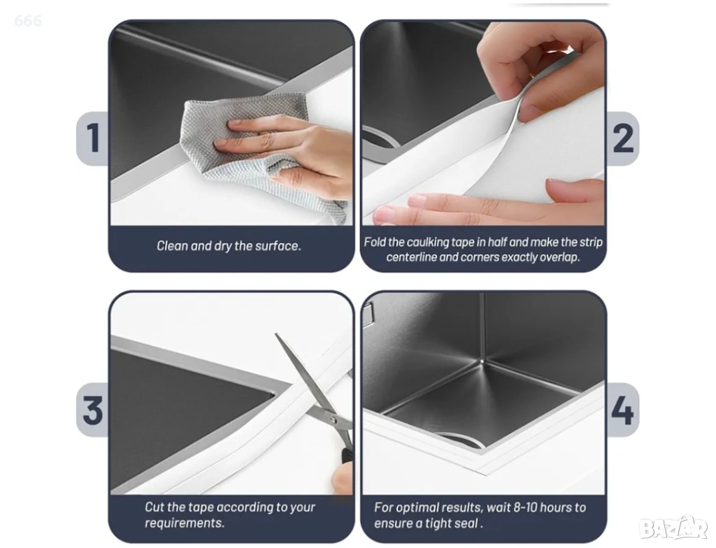 【Съвети】: Почистете зоната и я поддържайте суха преди монтаж. Ако се използва на места с ниски температури, може да се нагрее със сешоар и да се използва след като лентата омекне.
