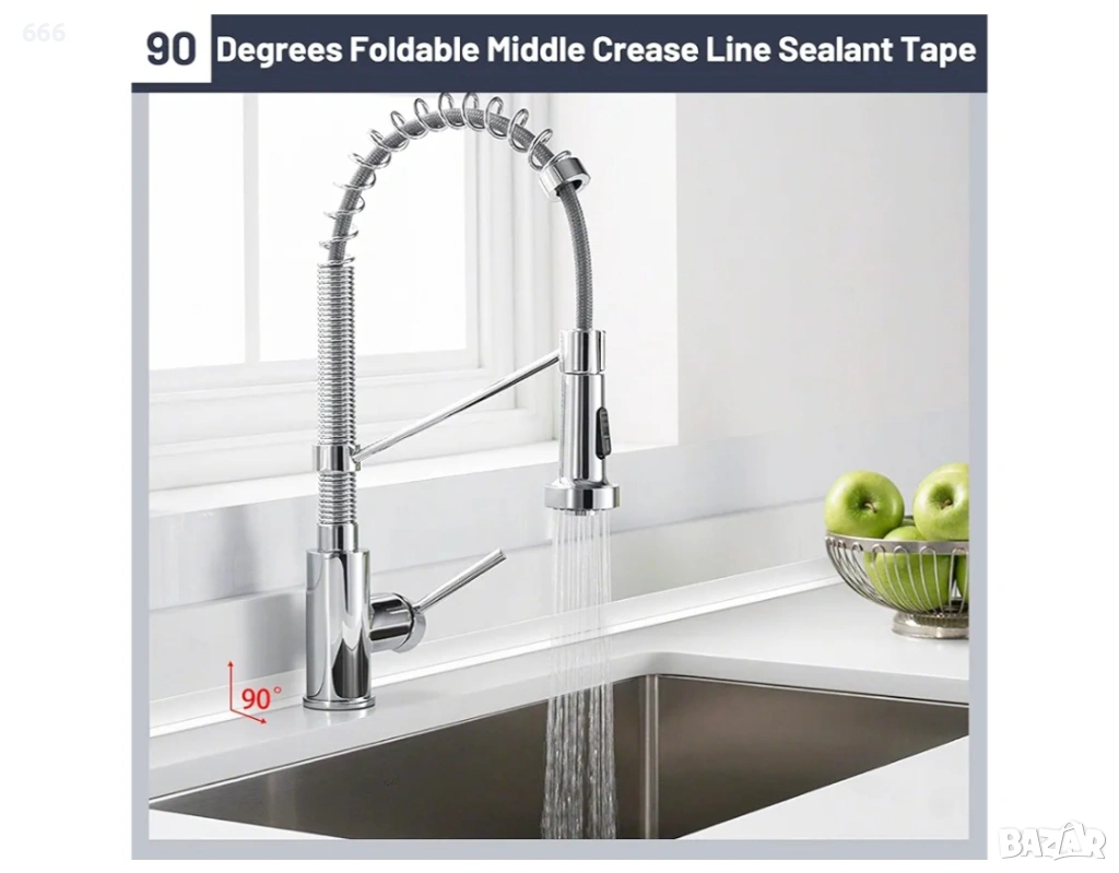 【Практичен дизайн】: Централното разположение на уплътнителната лента е с интегриран плисиран дизайн, който може да приляга по-плътно към ъгъла от 90°. Чисто бялото може да се съчетае с всеки модерен стил на обзавеждане.