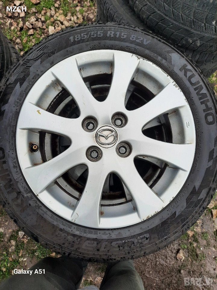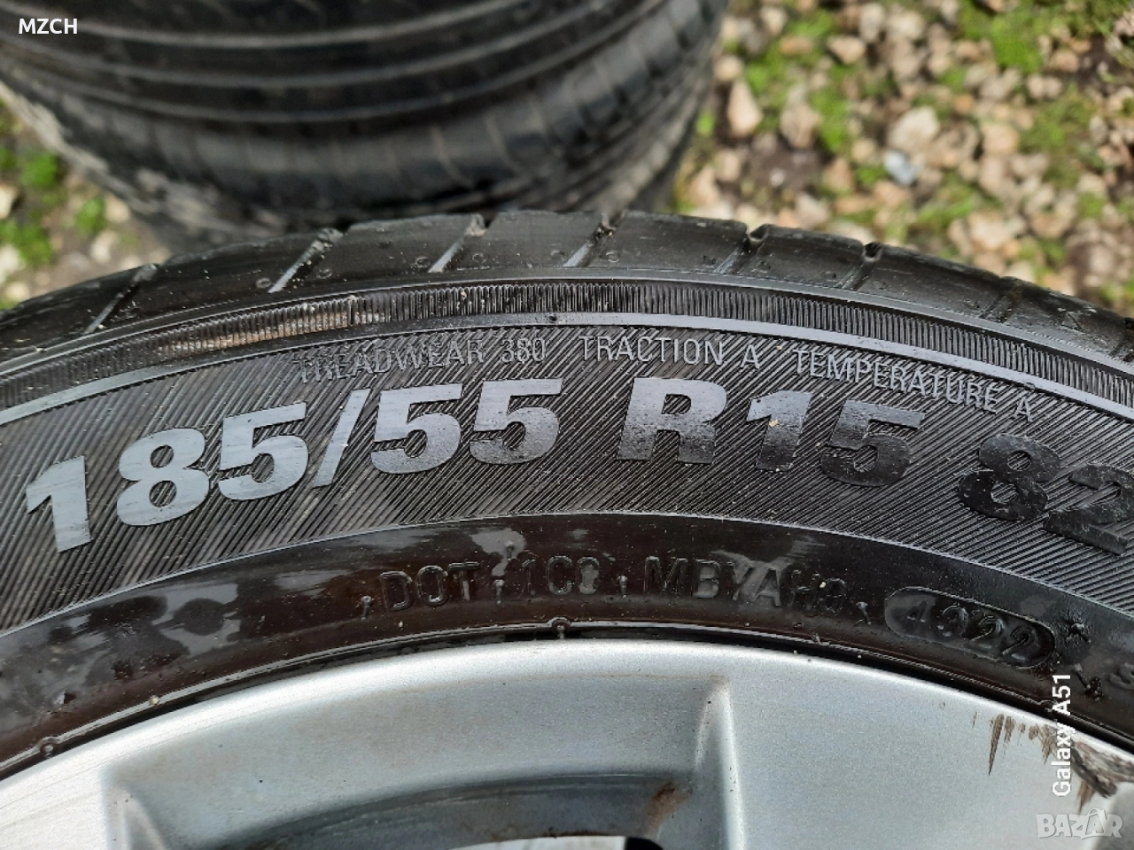 4 броя ляти джанти с гуми летни хубави 4×100 междуболтовото разстояние, 15цола за мазда, тойота и други модели.