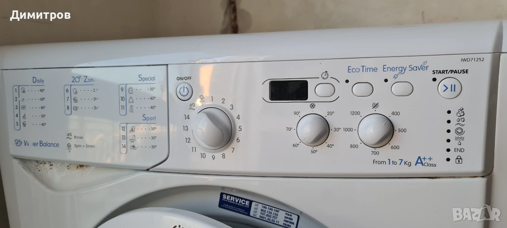 пералня INDESIT IWD 71252 - цяла за части!!! → Обява 54070661