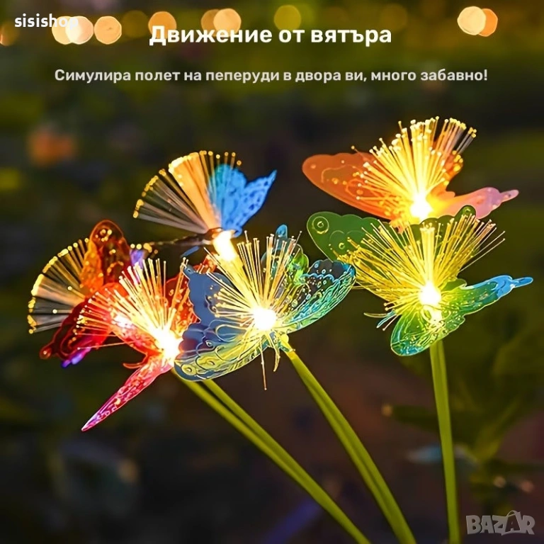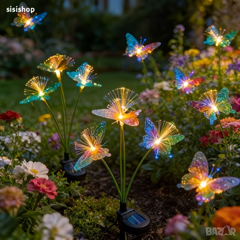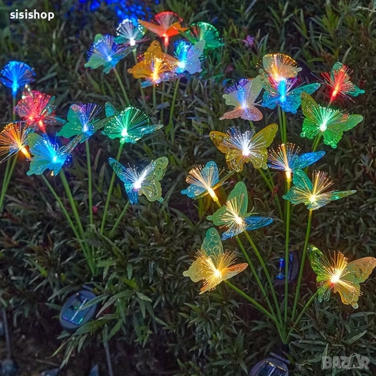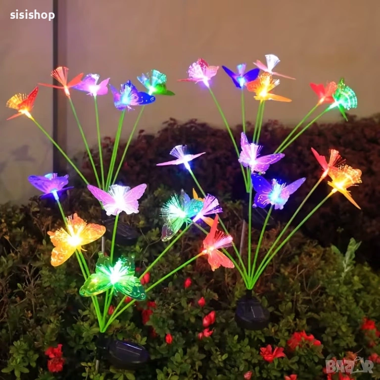 Декоративни соларни лампи с пеперуди – Водоустойчиви RGB цветове, идеални за цветни лехи и алеи 4986