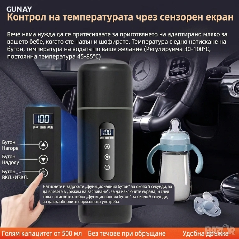 - Температурен контрол: Интелигентно многостепенно регулиране на температурата, което ви позволява да изберете точните градуси за вашата конкретна напитка - гореща вода за чай, перфектна температура за кафе или оптимални градуси за бебешко мляко.