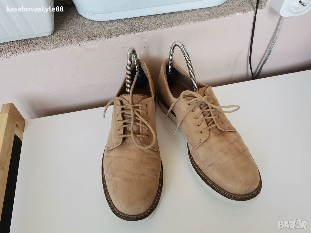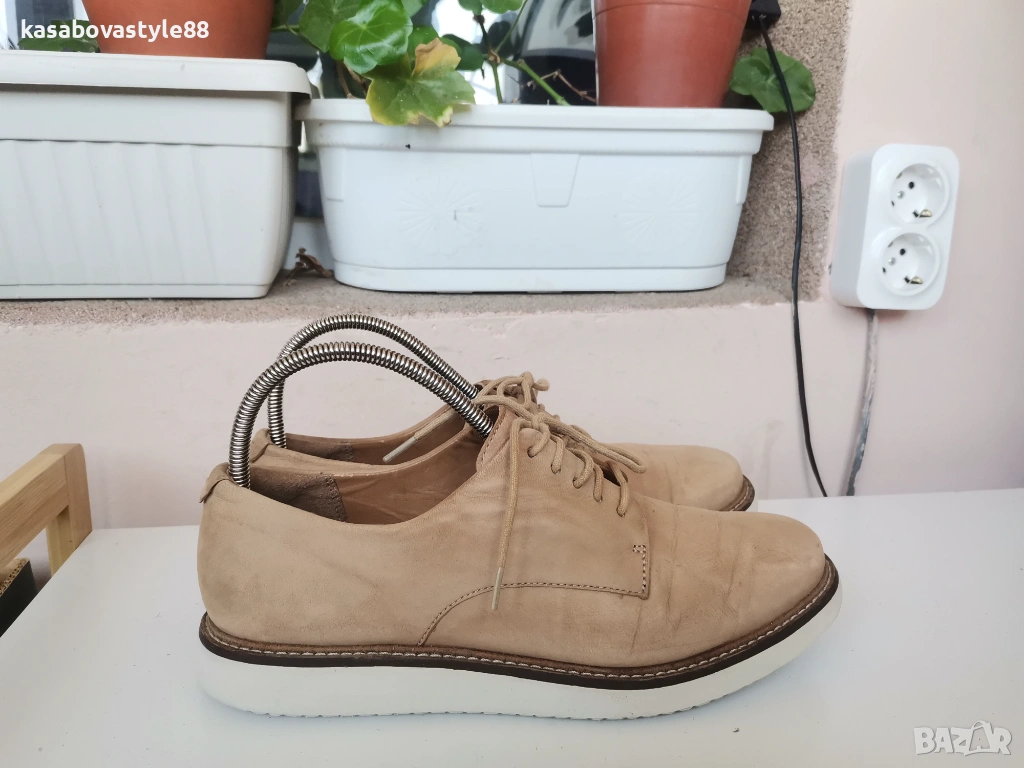 Класически модел спортни елегантни дамски обувки от естествена кожа в бежов цвят. Подходящи както за ежедневието, така и за официални поводи. Вътрешността е с много мека кожена стелка,а ходилото олекотено. Дължина на стелка 25см.Цялостна височина отзад 8.5см.Ходило 2зм.