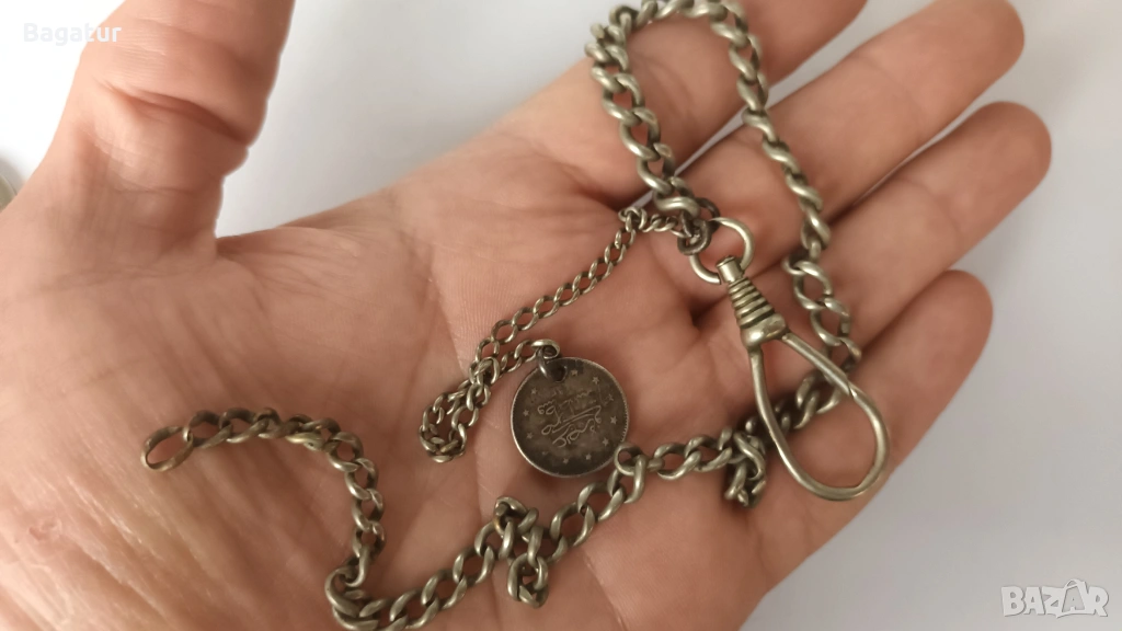 Голям синджир 40см +малка верижка с османска сребърна монета.