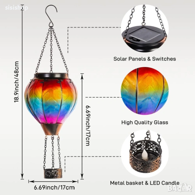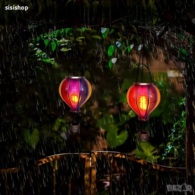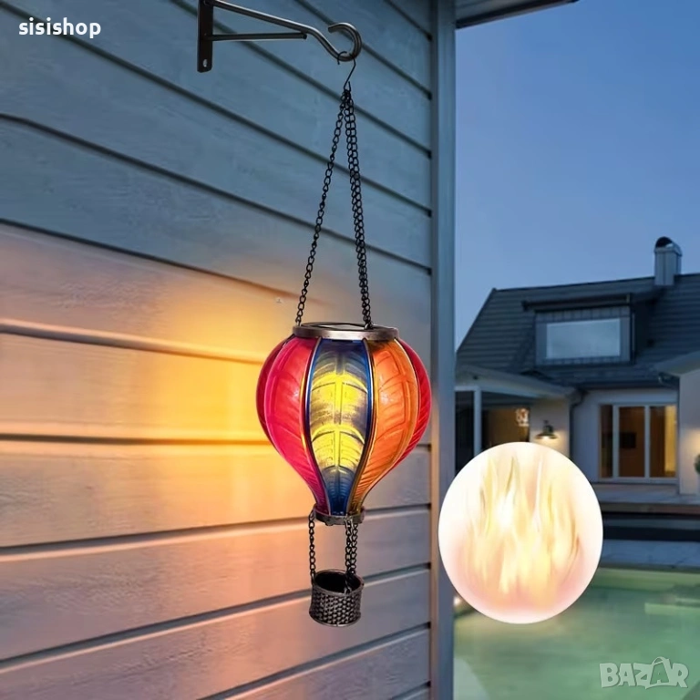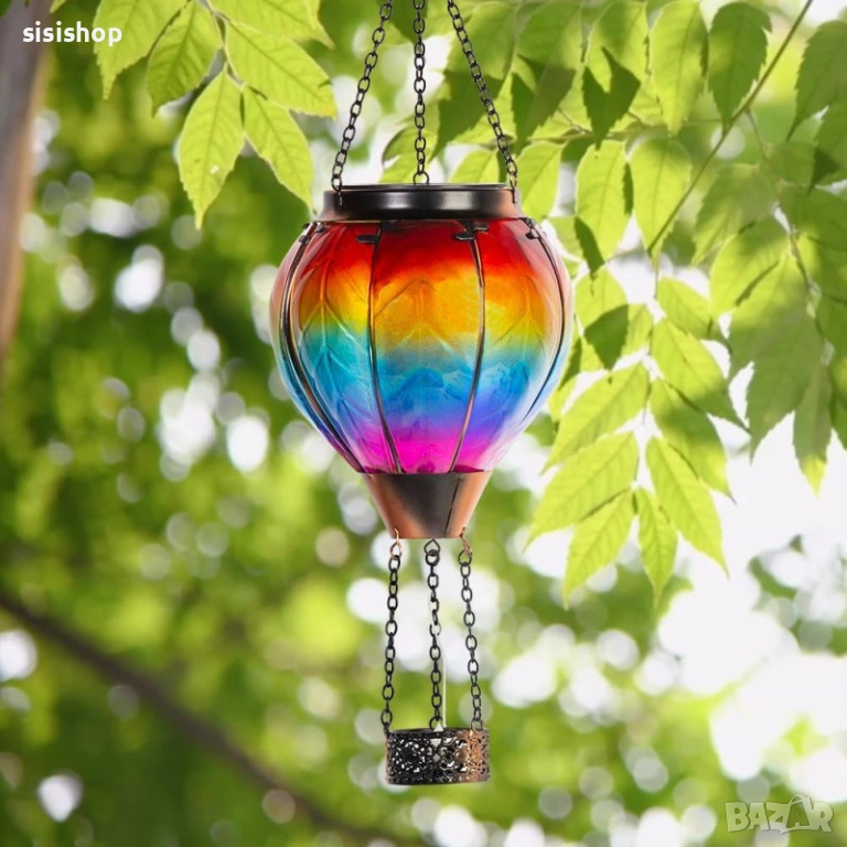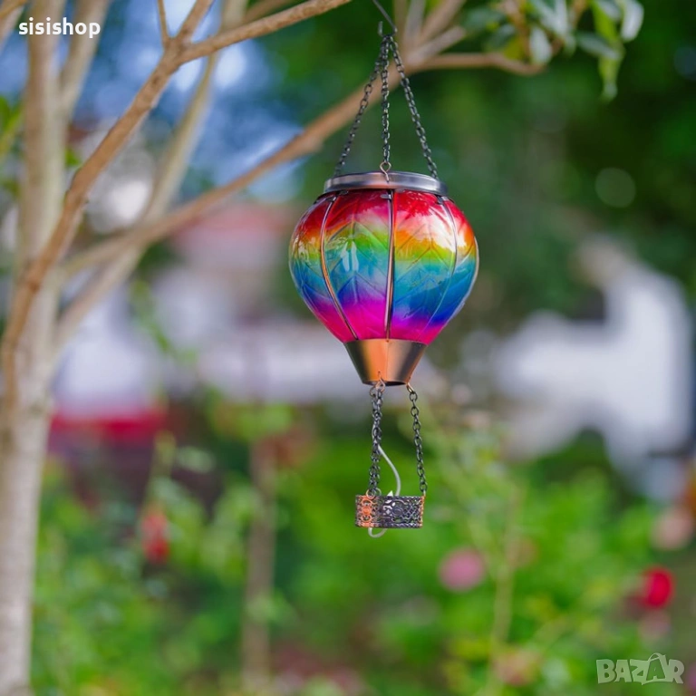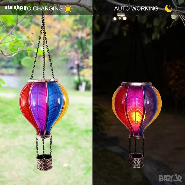 Декоративната соларна лампа Балон с горещ въздух е създадена за хора, които искат нестандартна и забележима външна декорация. Тя съчетава визия на въздушен балон, цветно стъкло, метална кошница и мека LED светлина, която създава красиво вечерно излъчване.