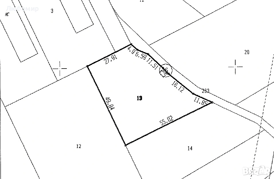 55 метра, граничещо със селски път. Възможност за свързване към водопровод и