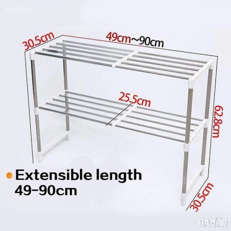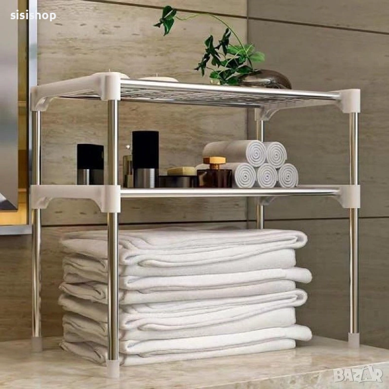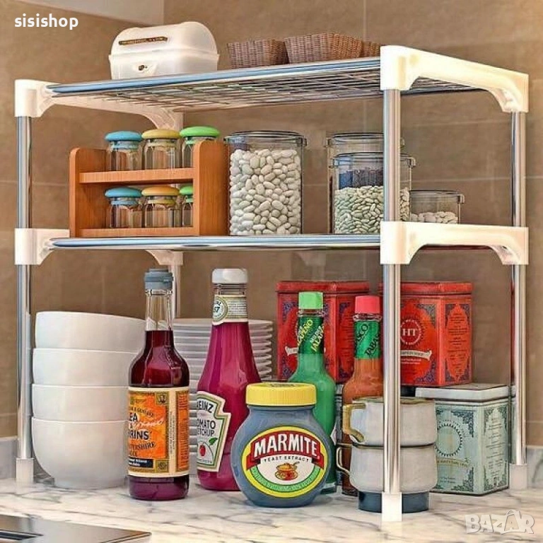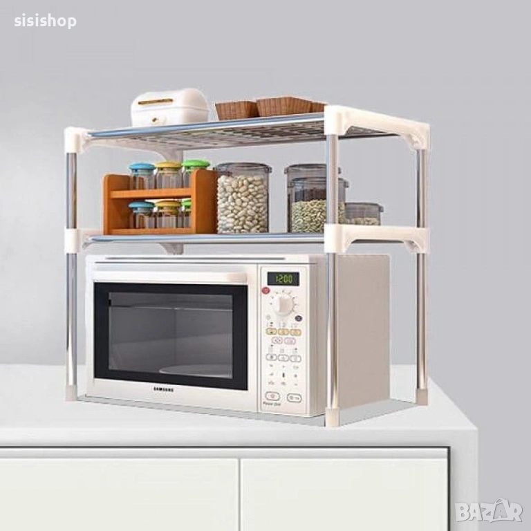 Търсите начин да въведете ред в кухнята си и да освободите място на плота? Този стилен бял стелаж на две нива е перфектният подарък за всяко домакинство, което цени функционалността. Поставете го над микровълновата фурна и веднага ще разполагате с допълнително място за подправки, готварски книги или кухненски принадлежности. Белият цвят и изчистеният дизайн го правят подходящ за всеки интериор, а металната му структура осигурява необходимата здравина. Инсталира се бързо и лесно, преобразявайки кухнята ви мигновено.