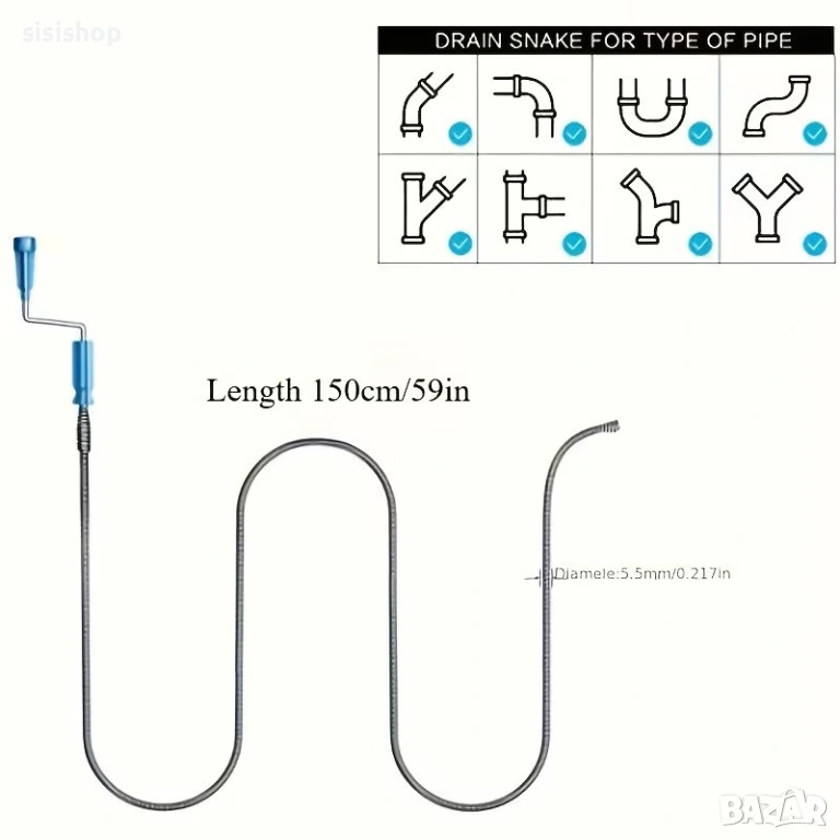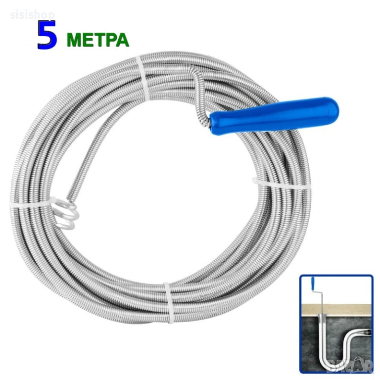 Търсите практичен инструмент за справяне със запушените канали? Тази стоманена тел за отпушване на канали е перфектното допълнение към домашния инструментариум. С обща дължина от 5 метра и здрава метална структура, тя лесно преминава през извивките на сифони и мивки. Уредът е снабден с удобна дръжка за навиване, която превръща почистването в бърза и чиста задача. Изключително подходящ за тоалетни и бани, този инструмент гарантира резултат, без да рискувате да увредите повърхността на тръбите или свързващите елементи.