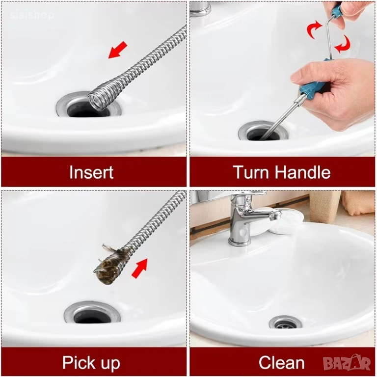 Универсалност: Ефикасно почиства сифони, тоалетни и кухненски мивки.