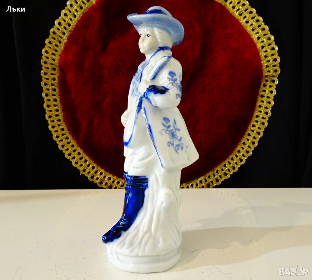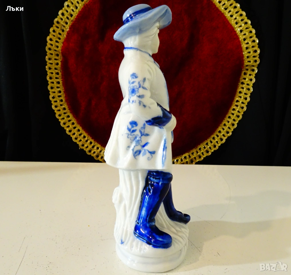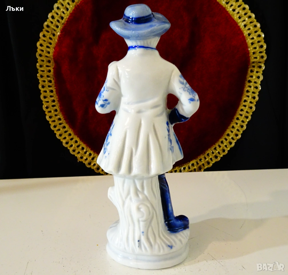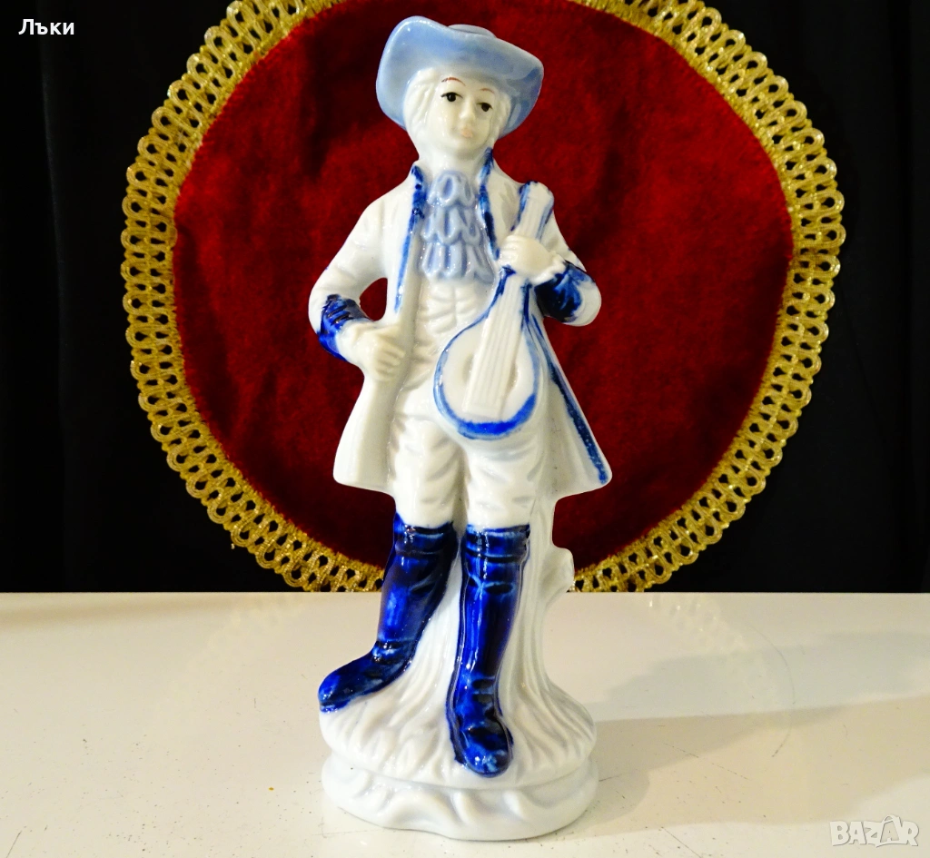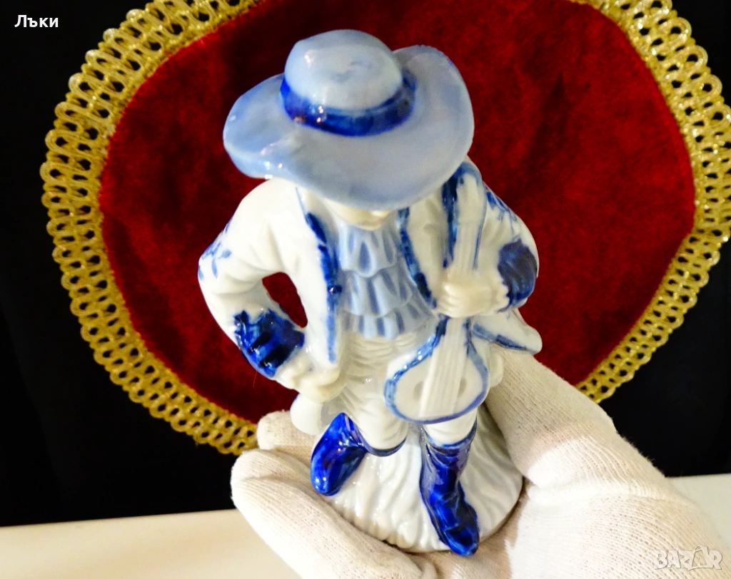 Лютнист,синьо-бял порцелан,ръчно рисуван с кобалт.Има запазен златен етикет Royal Dragon – Drache