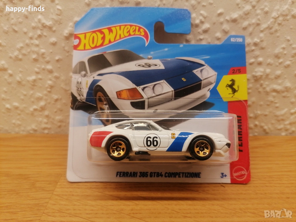 Ferrari 365 GTB4 Competizione (Бяла, #66) – Серия "Ferrari" (2/5), със златисти джанти.