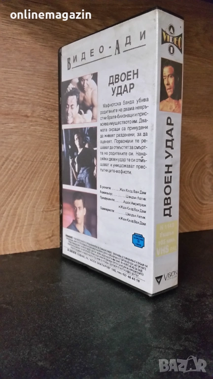 Продавам оригинална видеокасета на MULTI VIDEO CENTER " ДВОЕН УДАР " Един от най -известните филми на Жан Клод Ваня Дам . Филмът е от 1991 година и е с времетраене около 100 минути . С български субтитри. Касетата работи отлично. 6 снимки на касетата в работещо състояние . Изпращам с Еконт , Спиди или лично предаване.