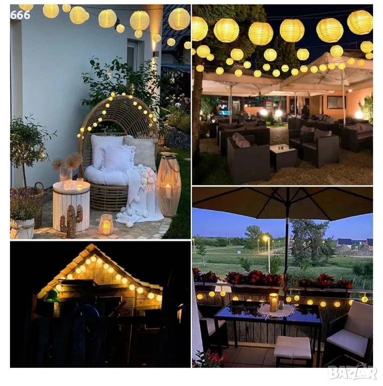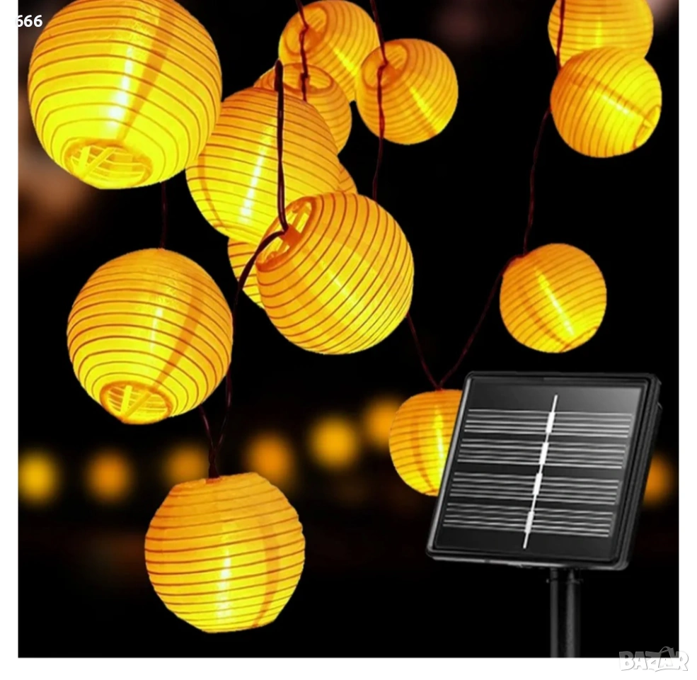 Соларен гирлянд с текстилни фенерчета