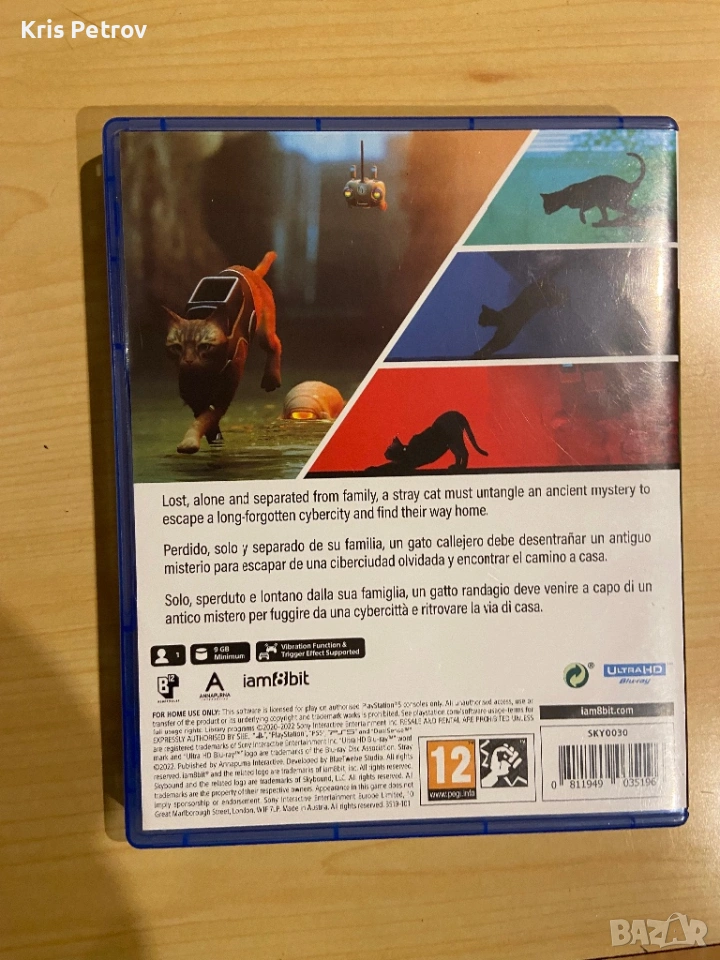 Продавам игра за playstation 5 Stray.Играта е в отлично техническо и визуално състояние.Превъртяна е веднъж и е прибрана.Диска е перфектен.Лично предаване в София или изпращам по куриер.