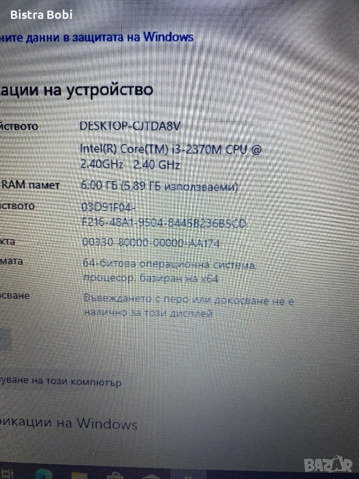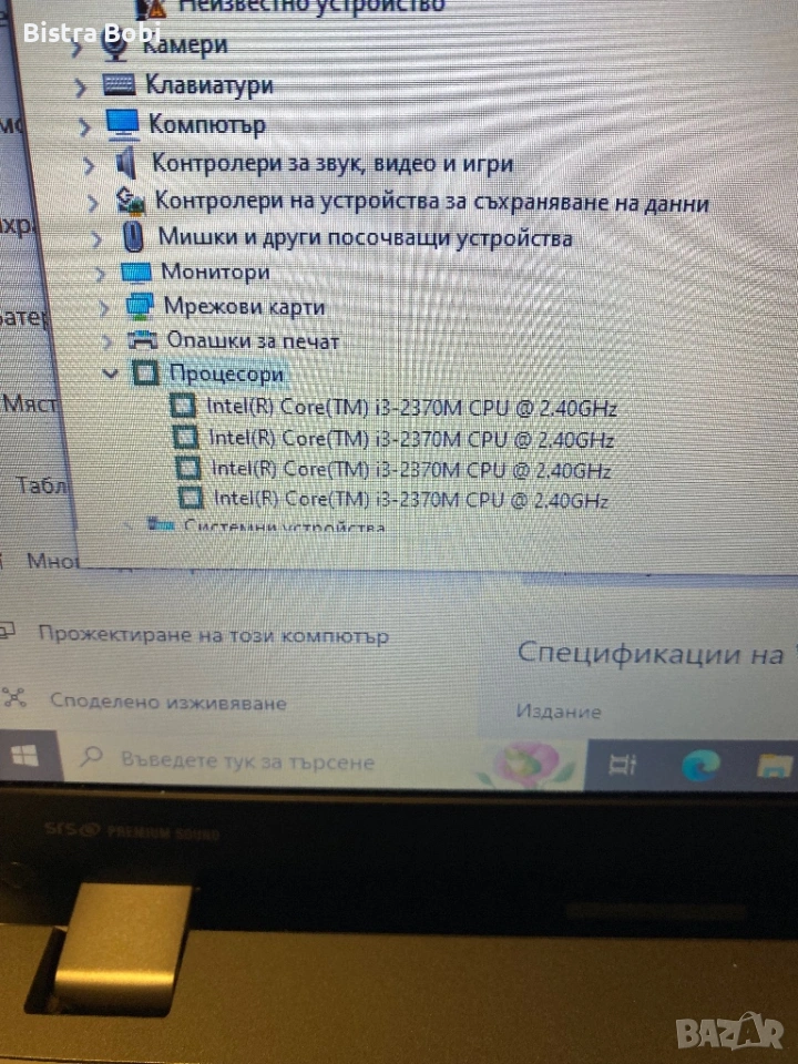 Процесор:Intel Core i3- 2370M-4x 2.40GHz.