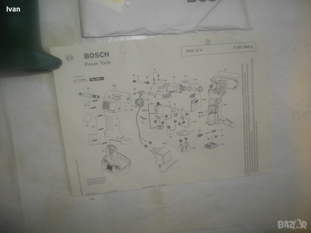 Към нея давам оригинално зарядно на Бош,12 волта, 1,4 ампера, модел BOSCH AL 60 DV. за никел-кадмиеви батерии на Бош. Зарядното е ползвано, от старите модели, зареждащо бавно и качествено батерията, с 1 зелена индикация.