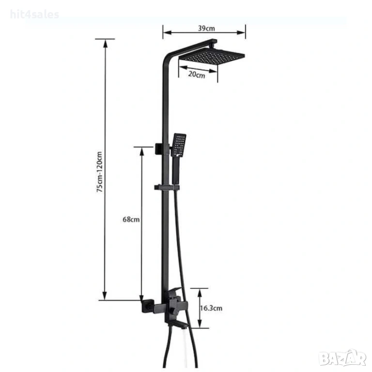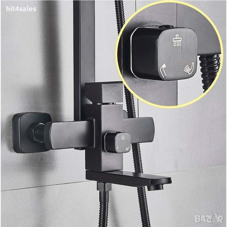 Комплект душ колона, стенен монтаж, двойно управление, керамика, 131-200 мм, черна → Обява 54072591