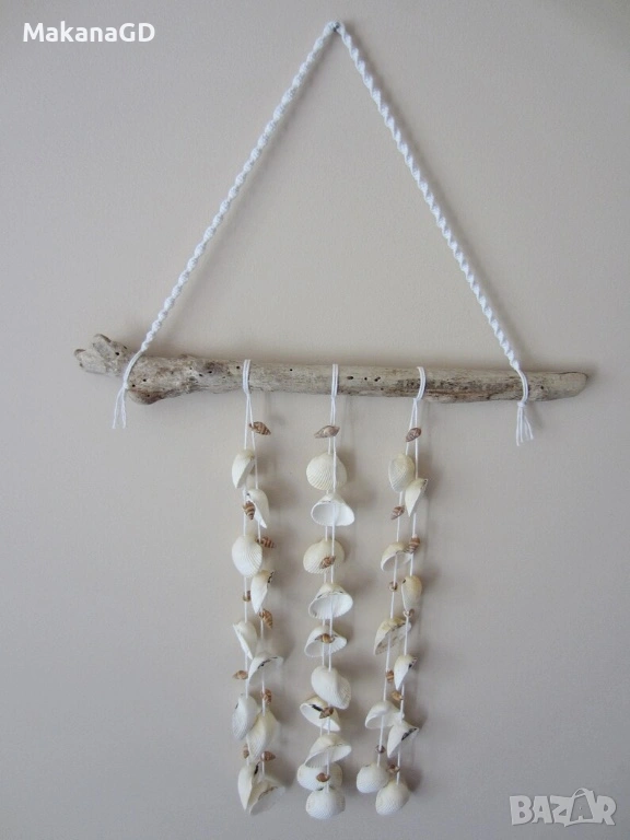 Изработено е от морски плавей и мидички.