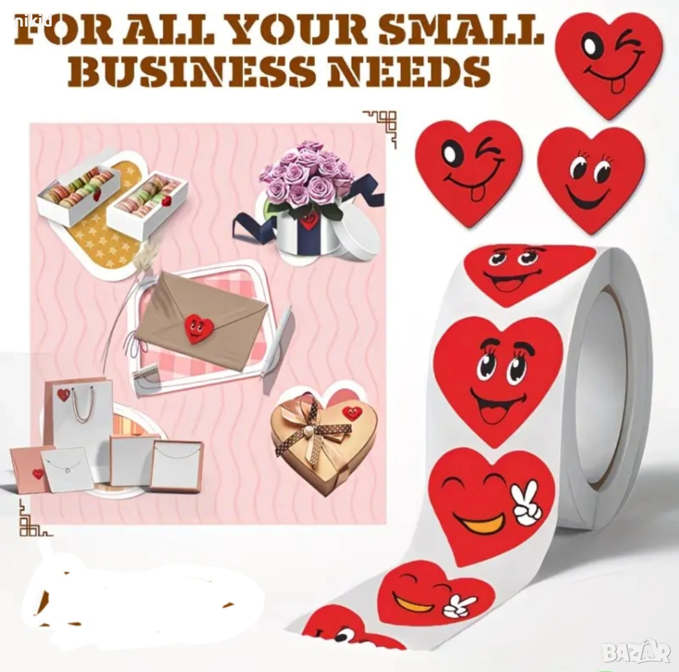 100 бр червени сърца сърце усмивки emoji самозалепващи лепенки стикери за ръчна изработка подарък → Обява 54072762