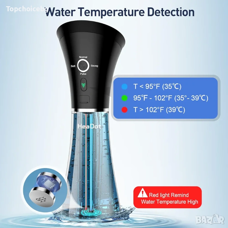 [Интелигентно отчитане на температурата на водата] - Нашият комплект за почистване на уши включва интелигентна система за отчитане на температурата на водата. Зелена светлина показва правилната температура на водата, синя светлина показва ниска температура на водата, а червена светлина показва висока температура на водата. Това гарантира вашата безопасност и комфорт по време на целия процес на почистване на ушите.