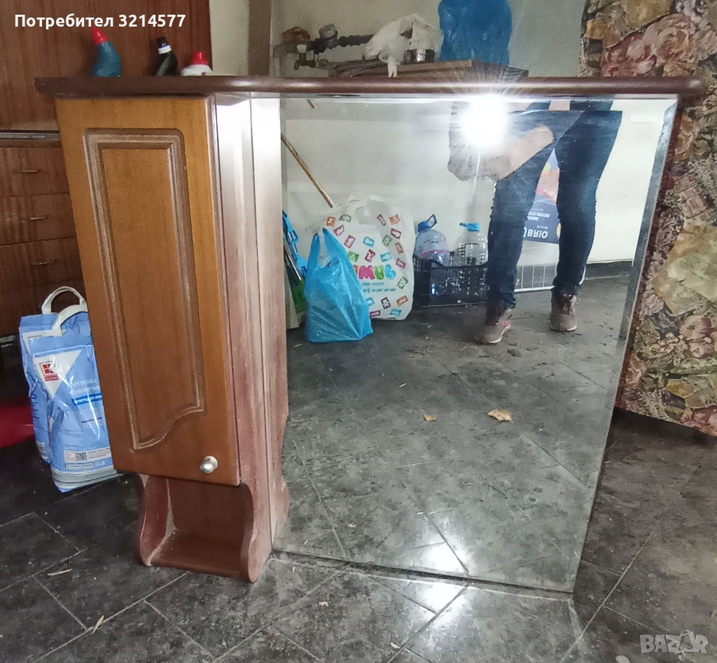 МДФ шкаф за стена с голямо огледало. Огледалото е с размери около 50х60 см. Има възможност за вграждане на осветление. Само лично предаване.