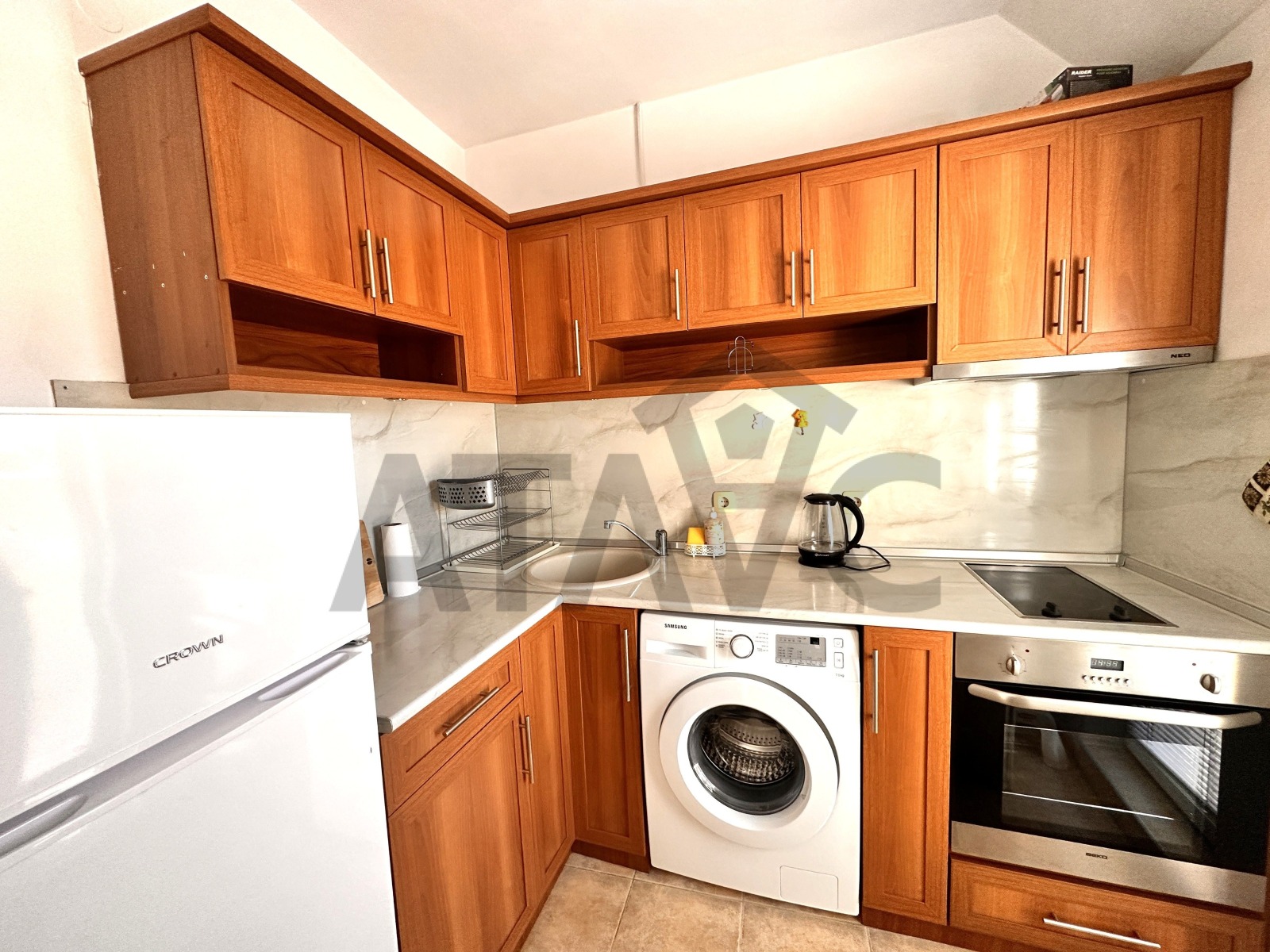 Апартаментът е напълно обзаведен и оборудван с всички необходими мебели и електроуреди, готов за нанасяне веднага.
