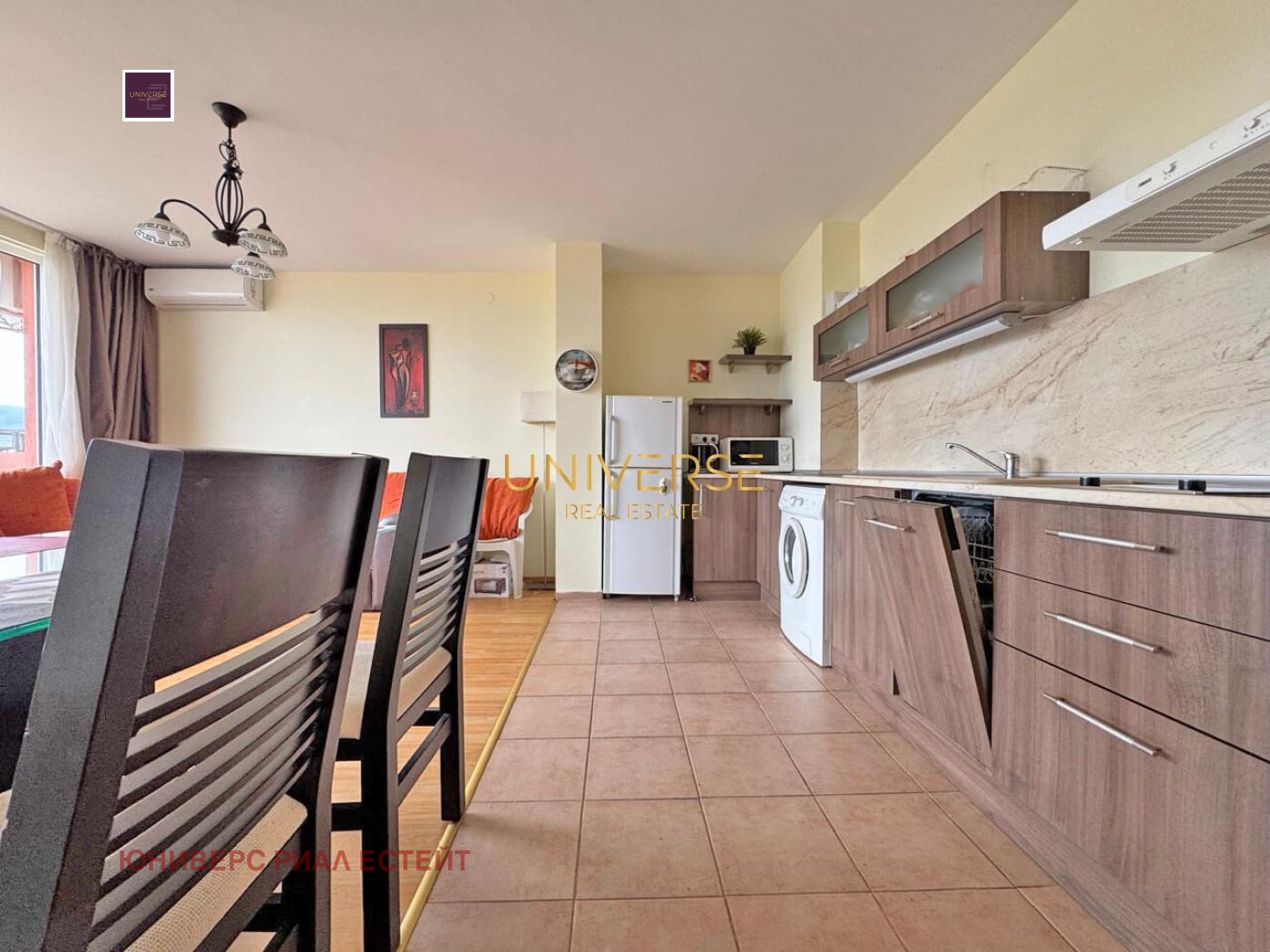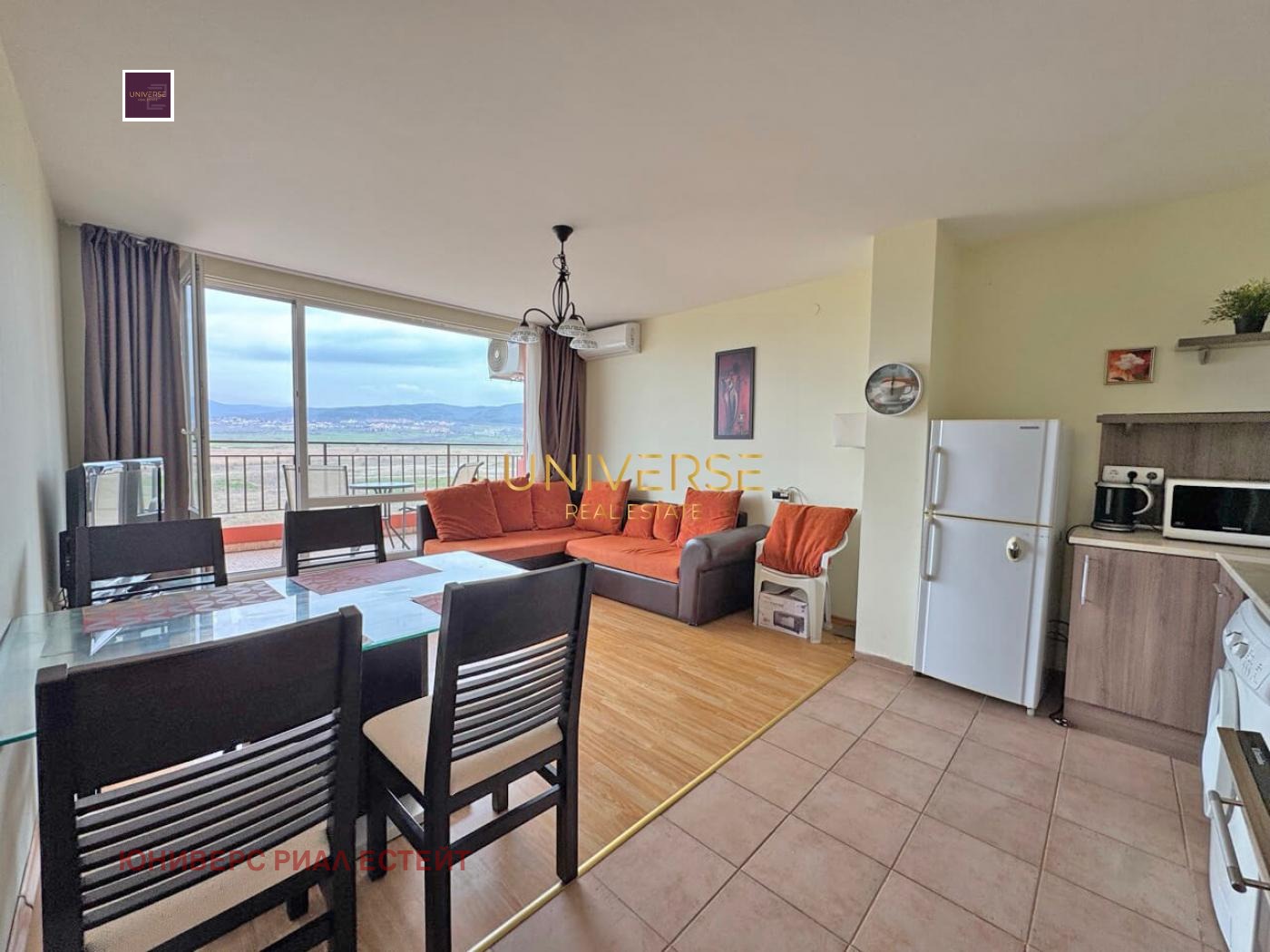 Продава се апартамент 1+1 в целогодишен комплекс в Слънчев бряг. Той е напълно обзаведен и оборудван. Разполага с удобно разпределение: трапезария/кухня, спалня, баня и тераса. Комплексът е идеален както за целогодишно живеене, така и за отдаване под наем. Просторният, добре поддържан имот включва 8 басейна, детски площадки, детска стая, където можете да оставите детето си с грижовен учител, развиващи занимания, магазин, ресторант и кафене. Всички целогодишни удобства са наблизо. Акт 16.#5717