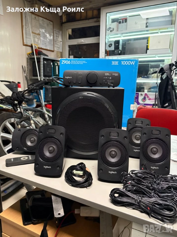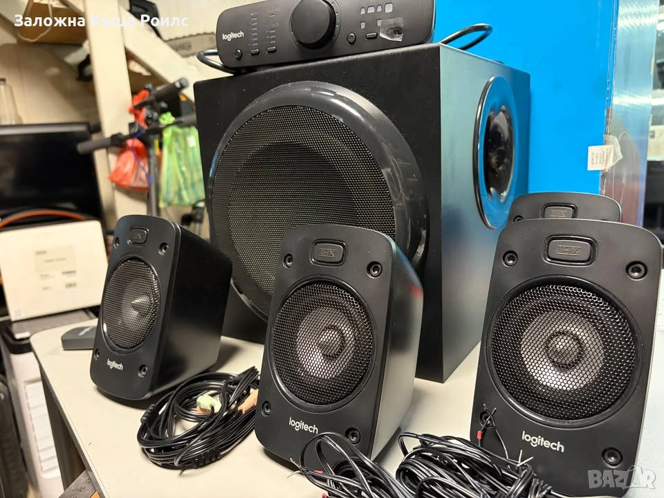 Cистема за съраунд звук Logitech Z906 5.1. Почти не е използвана, в отлично състояние. Включва всички тонколони, субуфер, контролен панел и дистанционно управление. Предлага се с оригиналната кутия.