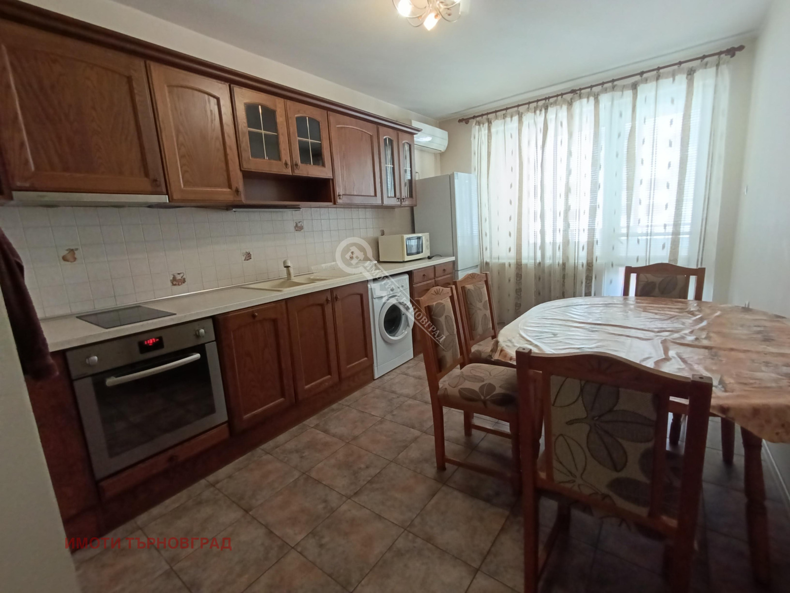 Имоти Търновград имат удоволствието да Ви предложат тристаен апартамент ново строителство, разположен в квартал Колю Фичето.В близост до Спортната зала, магазин LIDL, автобусна спирка, парк. На площ от 86 кв.м. са разположени кухня (всекидневна) оборудвана с хладилник, пералня, съдомиялна ( вградена), кухненско обзавеждане от масивно дърво с керамични котлони, фурна и аспирация, италианска керамична мивка с 2 вани и подвижна батерия, шкаф и разтегателна маса с 6 броя столове. Две спални- южна и северна,обзаведени с поръчкови мебели. Две тераси- южна и северна. Баня с душ кабина и хидромасажор, тоалетна с биде, мивка и шкаф- огледало и бойлер. Коридор оборудван с портманто, огледало и шкафче (тоалетка). Заповядайте на оглед! Оферта 3120.
