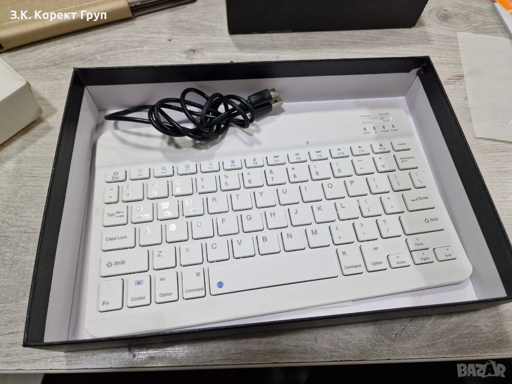 Продава се във вида от снимките - с кутия, клавиатура, калъф и кабел за зареждане.