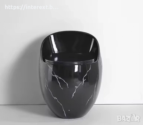 Елегантна органична форма, създадена за комфорт при сядане и изправяне, с луксозен черен мраморен ефект (гланц).