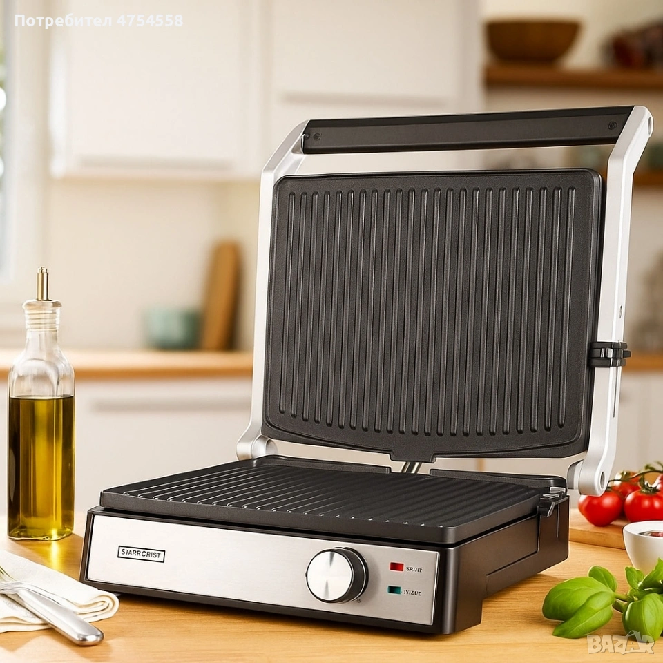 Функция: Пълно хоризонтално разгъване за използване като скара/тиган;