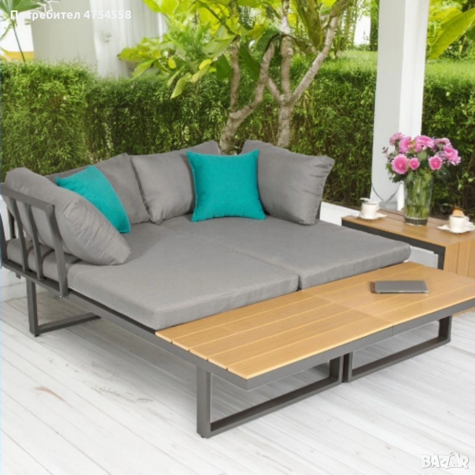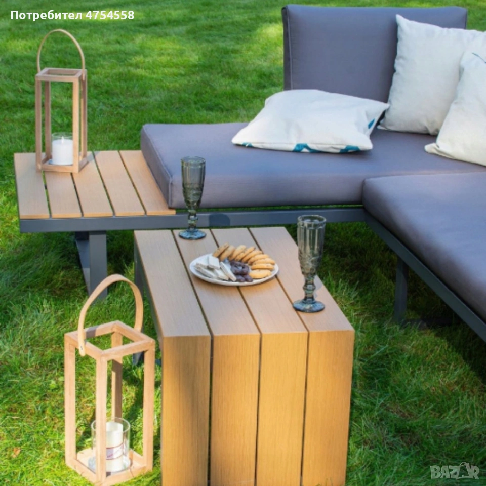 Градински комплект KANZA - модулен ъглов диван от алуминий с удобни възглавници и маса