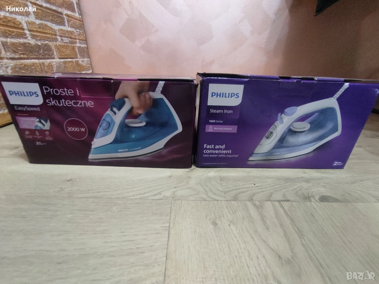 Два броя ютия Philips DST1030/20(светло синята)и GC1744/20(тъмно синята).И двете са нови и работят нормално,като първата(светло синята)може да има някакви фини следи поради това,че пристигна с нарушена опаковка.Цена за първата 10 евро,за втората(тъмно синята)20 евро.Двете заедно 25 евро.БЕЗ гаранция!Изпращам с преглед и тест.Повече информация на лично или на посочения телефон.