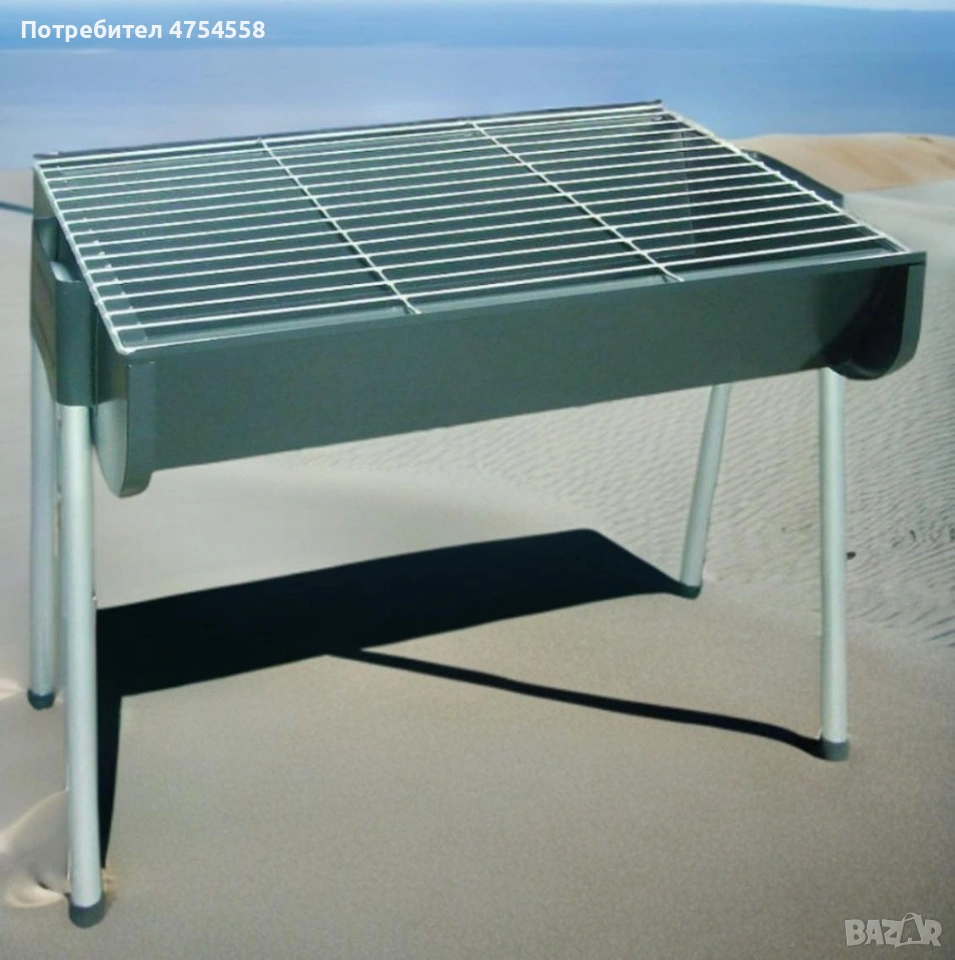 Тип гориво: Дървени въглища; Площ за готвене: Скара, подходяща за приготвяне на големи парчета месо или печени зеленчуци; Размери в см: 48.5 дължина x 31.5 ширина x 12.5 височина; Материал: Висококачествена метална конструкция със защитно покритие от високи температури; Портативност: Лек и лесен за транспортиране, идеален за къмпинг и пикник на открито.