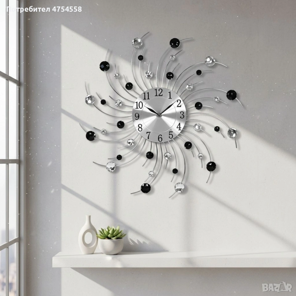 Модерен декоративен стенен часовник с кристали, 50 см → Обява 54073548