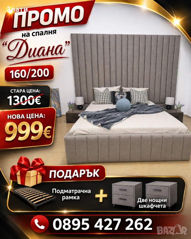 Нова тапицирана спалня с голяма табла.