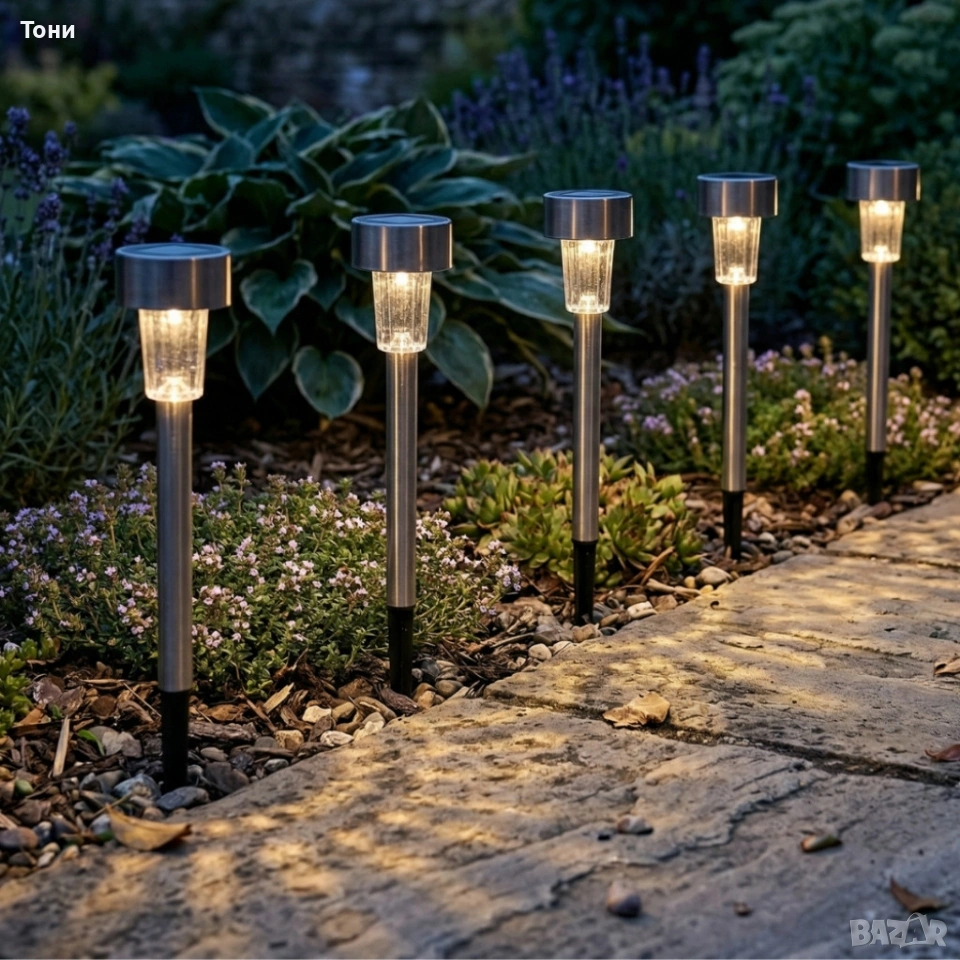 Комплект от 5 броя Led соларни лампи - автоматично включване без разход за електроенергия → Обява 54073678