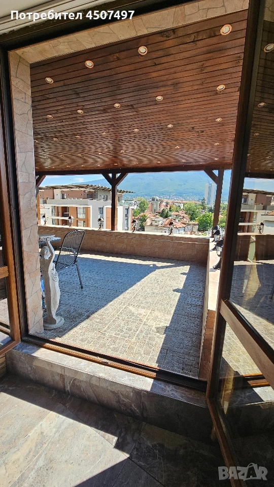 Супер локация, между ул. Пирин и ул. Казбек - успоредно на Бъкстон. Панорама към Витоша и Бъкстон. Обзаведен + 2 лед телевизора 55 инча - нови и трети на терасата. голям хол + кухня, стая, голяма тераса с дървен масивен навес. 106 кв.м. чиста площ - без включени идеални части. От 1 май, ще е свободен. :)