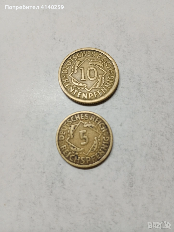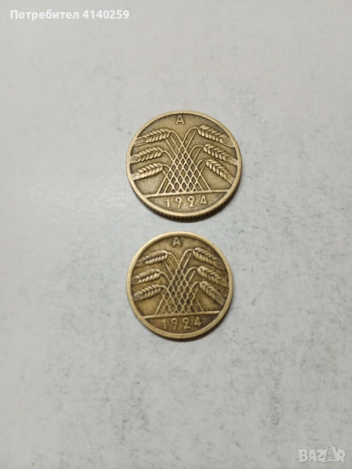 ГЕРМАНИЯ РАЙХ МОНЕТИ 10 ПФЕНИГА 1924 Г 5 ПФЕНИГА 1924 Г ЦЕНА ЗА 2 БРОЯ СЪСТОЯНИЕ ОТЛИЧНО ПОЛУЧАВАТЕ СНИМАНИТЕ МОНЕТИ РАЗГЛЕДАЙТЕ ДРУГИТЕ МИ ОБЯВИ ДА КОМБИНИРАТЕ ДОСТАВКА ЕКОНТ ЗА ВАРНА ЛИЧНО