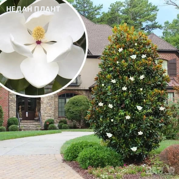Магнолия "Грандифлора", снимка 1 - Градински цветя и растения - 54073912 Магнолия "Грандифлора", снимка 2 - Градински цветя и растения - 54073912 1/2