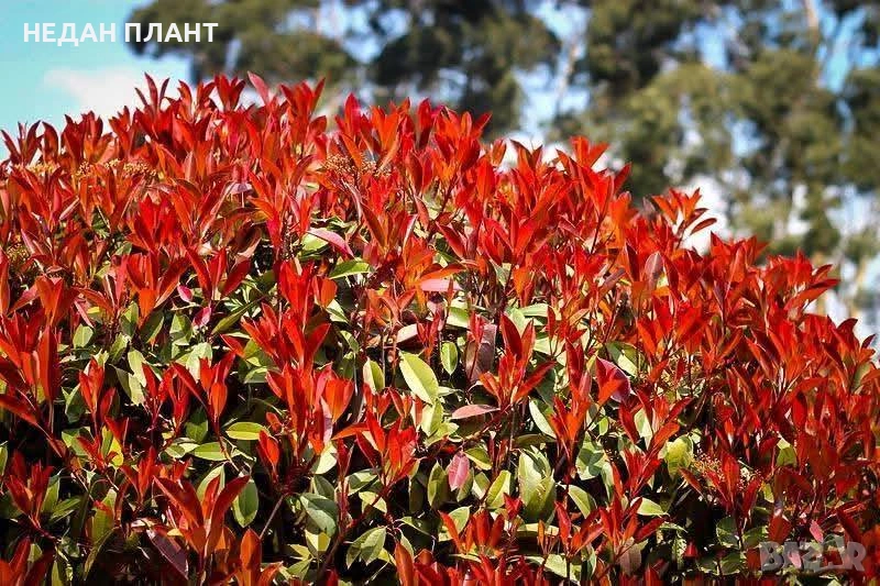 Ефектен вечнозелен храст, ценен заради яркочервените си млади листа, които постепенно преминават в тъмнозелено. Създава силен контраст и придава свежест на всяка градина.