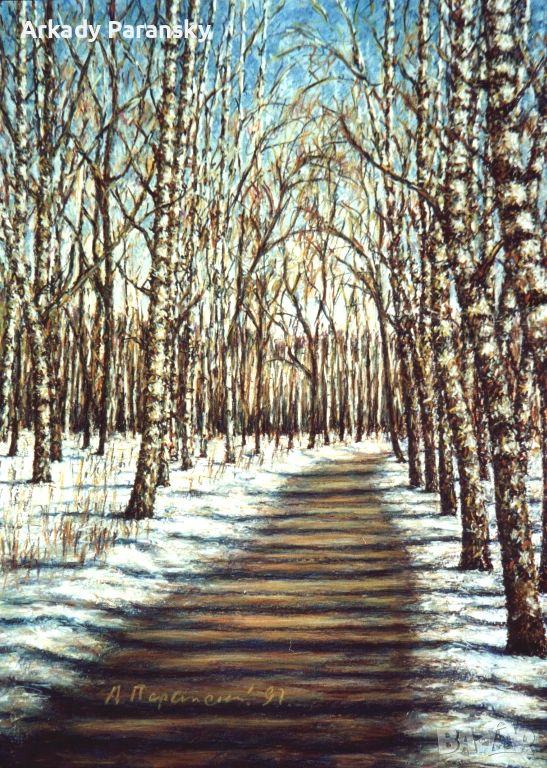 Аркадий Паранский. Пролетен ден в парка. 1997. Картон. Пастел. 70x51см. Живопис под акрилно стъкло.