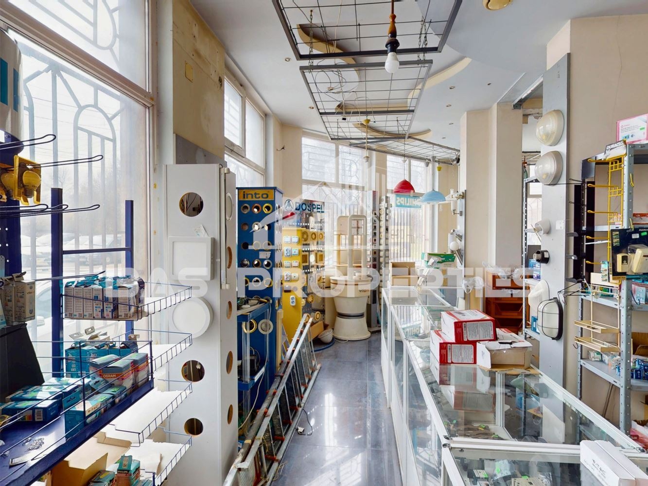 Помещението е функционирало като магазин за електроматериали и осветление. Ще бъде изчистено и предадено празно. Необходимо е освежаване. Монтирани климатици за отопление и охлаждане.