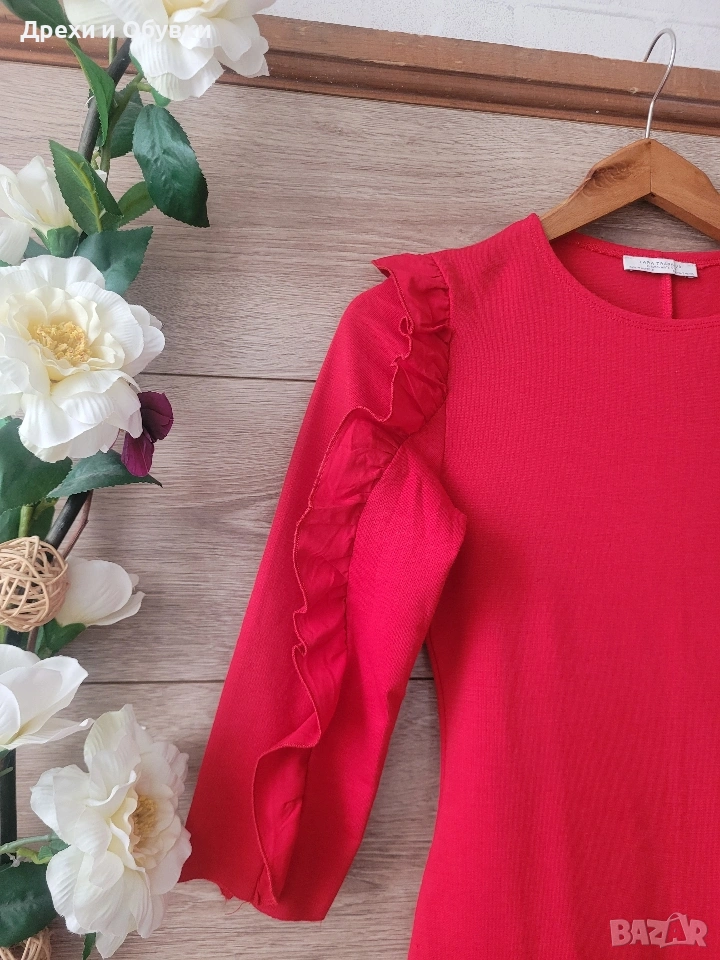Червена рокля Zara. Еластичност на материята. Красиви ръкави. За елегантна визия. Размер S Дълга 100см Цена 25€