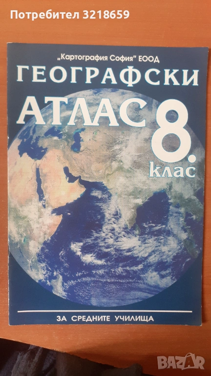 Учебник по география за 9 клас и атлас по география за 8 клас.